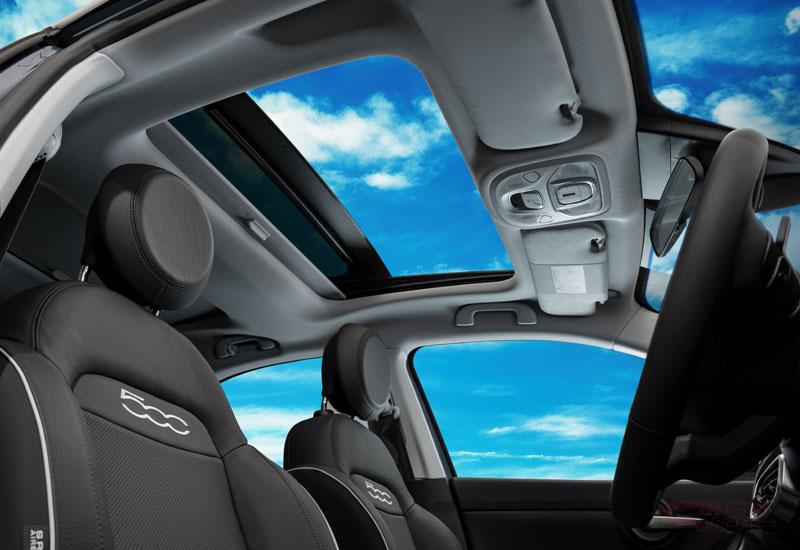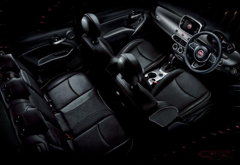 限定車「500X グランビスタ」の車名「グランビスタ」は、“壮大な眺め・景色”を表しており、圧倒的な解放感を感じることができるモデル。ボディカラーは、通常は設定のない特別なイタリアブルーを基調に、ピラーやルーフをブラックで仕上げた2トーンカラーを採用。エクステリアミラーカバーもブラック仕上げとされ、スタイリッシュな外観を演出している。インテリアでは、前席の頭上に電動開閉式のガラスルーフを、後席には固定式ガラスサンルーフを採用。後席にも採光を確保したことですべての席が明るく、解放感を感じることができる。