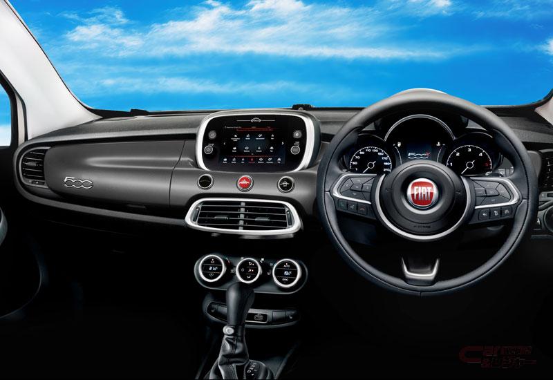 なお、「500X グランビスタ」は「500X Cross(クロス)」をベースとしており、主な装備としてはLEDヘッドライト、レザーシート(シートヒーター付)、8ウェイパワーシート(前席)、デュアルゾーン式フルオートエアコンなどを標準装備しているほか、対向車や前走車の有無を検知してヘッドライトのハイ/ローを自動で切り替える自動ハイビーム、車線から逸脱を警告するレーンデパーチャーウォーニング、ブラインドスポットモニター、リアクロスパスディテクションなどの運転支援装置も装備している。