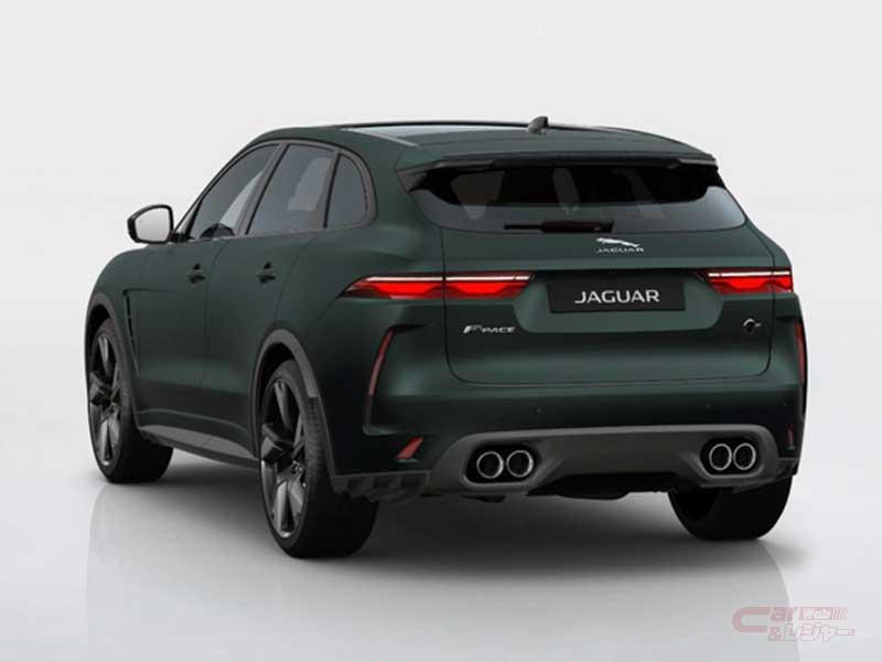 エクステリアカラーは、光沢を抑えたサテンマットフィニッシュを施した、ジャガーを象徴する“ブリティッシュレーシンググリーン”を採用し、カーボンファイバーミラーカバーキットを特別装備している。インテリアには、高級感を演出するライトオイスターのセミアニリンレザーパフォーマンスシートとカーボンファイバートリムを採用した。