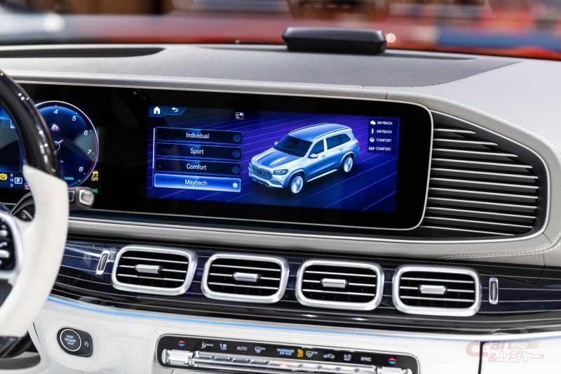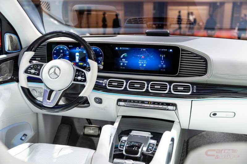 ヒップポイントは、セダンのSクラスと比較すると運転席で250mm以上、後席で280mmそれぞれ高くなっているほか、後席をベースモデルのGLSより120mm後方に、30mm内側に移動させ、ゆとりある広さを実現。4人乗りが標準仕様となる。ダッシュボードやステアリングは厳選したナッパレザーで覆われ、エアアウトレットのルーバーにはクロームの加飾を施しフロントグリルのピンストライプを想起させるデザインを採用。コックピットディスプレイの表示モードは「クラシック」「スポーツ」「プログレッシブ」「ジェントル」などから選択可能。