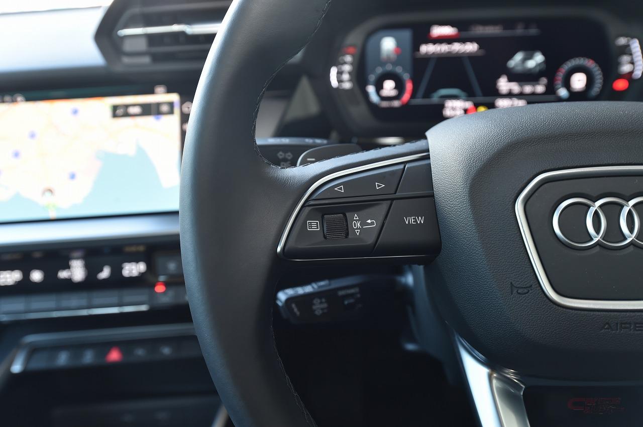 パワートレインは、従来の1.4L直4直ターボに代わり、1.0L直3ターボ+48Vマイルドハイブリッドの「30TFSI」が導入されたことが大きなポイント。この1.0.Lターボは、「A1」や「Q2」にも搭載されているが、これにマイルドハイブリッドを組み合わせたのは、同社のコンパクトクラスでは初となる。このほか、秋頃の導入が予定されている2.0L直4ターボにクワトロ(4WD)を組み合わせる「40TFSI」、ハイパフォーマンス版の「S3」が設定されている。