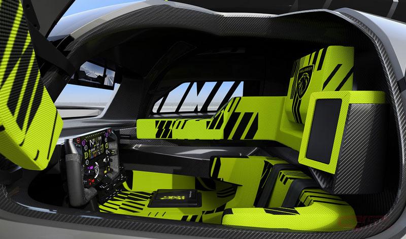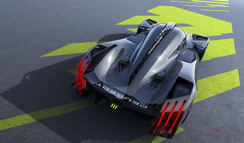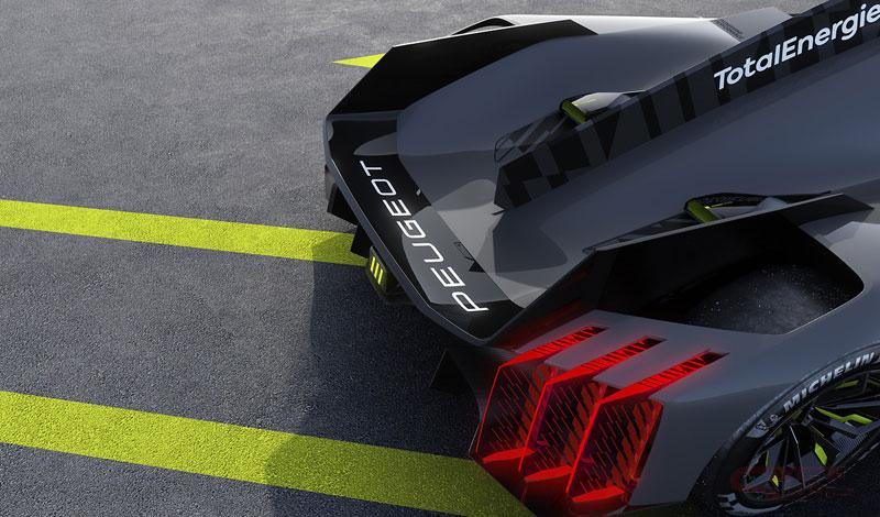 ハイブリッド・パワーユニットを搭載し、全輪駆動のトランスミッションを採用したプロトタイプは、ロードカーとレーシングカーの双方で環境問題に対して責任あるパフォーマンスを実現。フォルムとエアロダイナミクスは、プジョー・スポールのテクニカル・ダイレクターのオリビエ・ジャンソニ(Olivier JANSONNIE)の下で働く開発エンジニアと、プジョー・デザイン・ダイレクターのマティアス・ホッサン(Matthias HOSSANN)が率いるデザインチームの協力により開発。FIA(Fédération Internationale de l’Automobile) とACO(Automobile Club de l’Ouest)が策定した、耐久レースの主要カテゴリーであるLMP1の後継となるLMH(ル・マン・ハイパーカー)のレギュレーションに基づいたアプローチが行われ、流れるようなライン、リアウイングのないデザイン、力強いブランド・アイデンティティを備えたモデルとなっている。