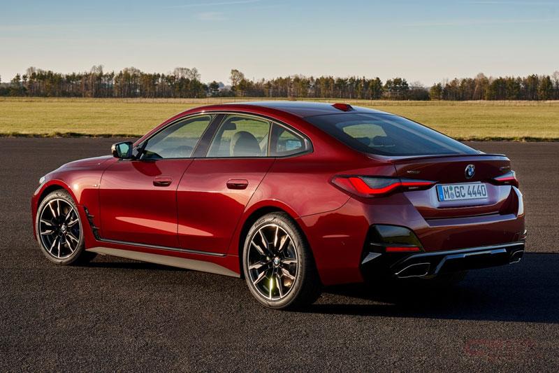 4シリーズ グラン クーペのスポーティでエレガントなデザインに加え、Mパフォーマンス・モデル専用色となるセリウム・グレーをキドニー・グリル、エア・インテーク、エア・ブリーザー、ミラー・キャップに採用している。また、トランク・リッドには、Mリア・スポイラーを装備し、空力特性を高め、高速走行時の安定性を向上させている。
