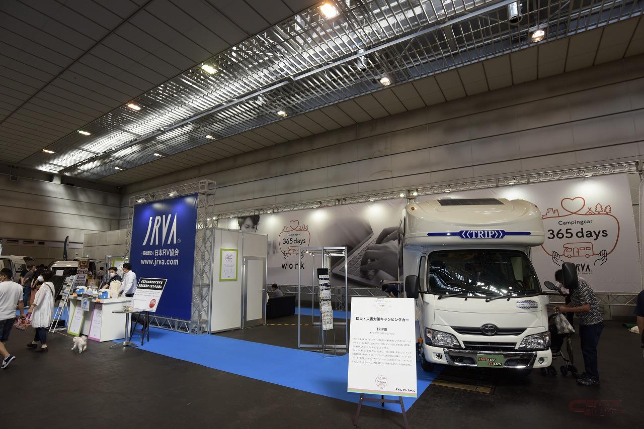 また、日本RV協会ブースでは、レジャーだけでなく、災害への備えやテレワークなどのビジネスユースを目的とした展示も行われ、キャンピングカーが持つ可能性を訴求した。