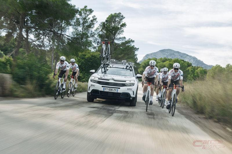 会場では「C5エアクロスSUV プラグインハイブリッド」と「ベルランゴ」の2台を展示する。「C5エアクロスSUV プラグインハイブリッド」は、ツール・ド・フランスなどのメジャーレースにおいてAG2R CITROËN TEAMのチームカーとして使用されている。また、今回の「ベルランゴ」の展示モデルには、サンルーフと天井収納のModuTop®が未装備となるため、より道具感が強く、室内天井高の稼げる仕様となっているため、FEELグレードが選ばれており、そこに自転車やグッズを積載したスタイリングを施して展示されている。