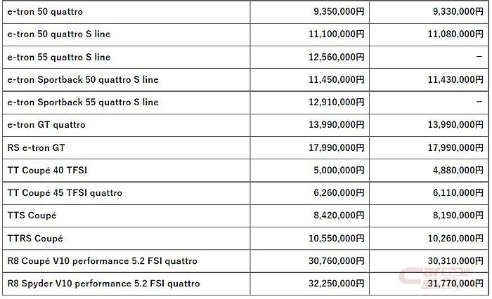 アウディ ジャパンは8月26日、下記のとおり10月1日より価格改定を実施すると発表した。今回の改定は、原材料価格の値上がりによるもので、今回一部モデルにおいては同時に仕様変更も実施しており、これらも新価格に反映されている。