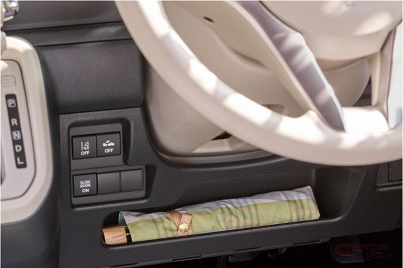 パワースライドドアが閉まる動作中にリクエストスイッチ、または携帯リモコンでドアロックを予約できる「パワースライドドア予約ロック機能」を採用(HYBRID X、HYBRID S)。なお、「パワースライドドア予約ロック機能」のリクエストスイッチでの操作はスズキ初採用となる。