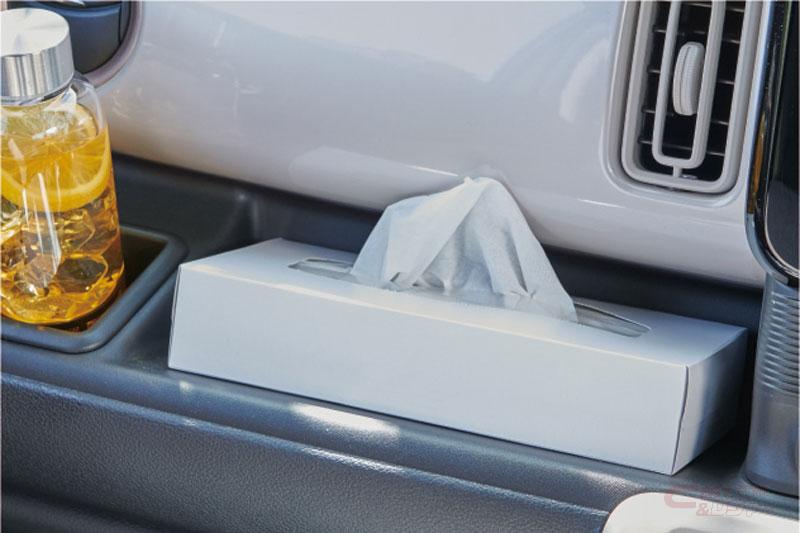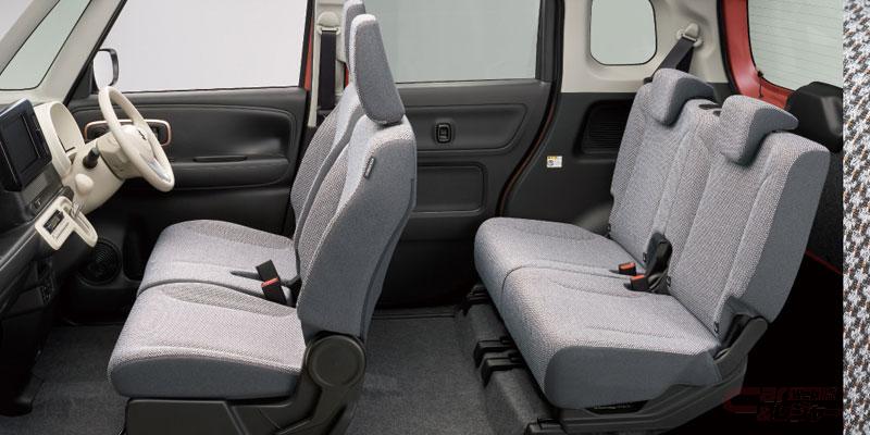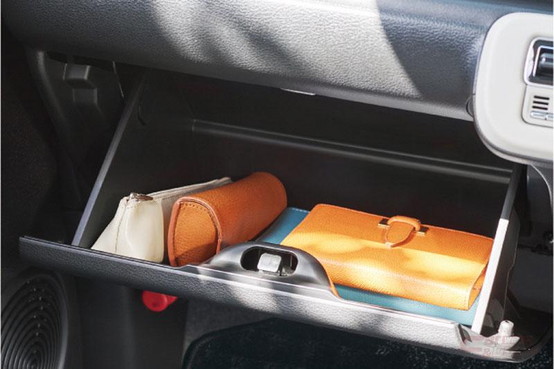 スマートフォンやウエットティッシュなどの小物を収納できるシートバックアッパーポケット(運転席)をスズキ初採用(HYBRID X)。インパネにはスマートフォンなどが充電できるUSB電源ソケット(HYBRID X、HYBRID S)とともに、大型スマートフォンも収納できるセンターポケットを設定。ほかにも、ワンアクションで素早く格納・復帰できるワンタッチダブルフォールディングリヤシート、「360°プレミアムUV&IRカットガラス」を採用しているほか、9インチのスマートフォン連携メモリーナビゲーションをメーカーオプションとして設定した。