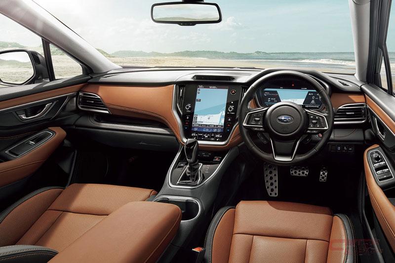 新型「レガシィ アウトバック」は、低回転域から力強いトルクを発生させる1.8L水平対向4気筒直噴ターボエンジンを搭載。また、スバルグローバルプラットフォーム+フルインナーフレーム構造等による車体剛性の最適化で、動的質感と衝突安全性能を大幅に向上した。さらに、リアルワールドにおける実用性を進化させた「新世代アイサイト」や、3D高精度地図データを採用した高度運転支援システム「アイサイトX(エックス)」などの先進安全装備を全車標準装備した。