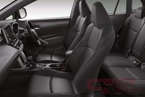 一方、内装はインストルメントパネルからドアトリムにかけ、連続性のあるデザインで室内空間に広がりを持たせた他、室内照明にすべてLEDを採用する等、カジュアルな雰囲気の中にも、上質かつ洗練された質感を持たせた。前席は、スリムな背面部と高いホールド性を両立させた、スポーツシートを採用した(除くG“X”グレード)。