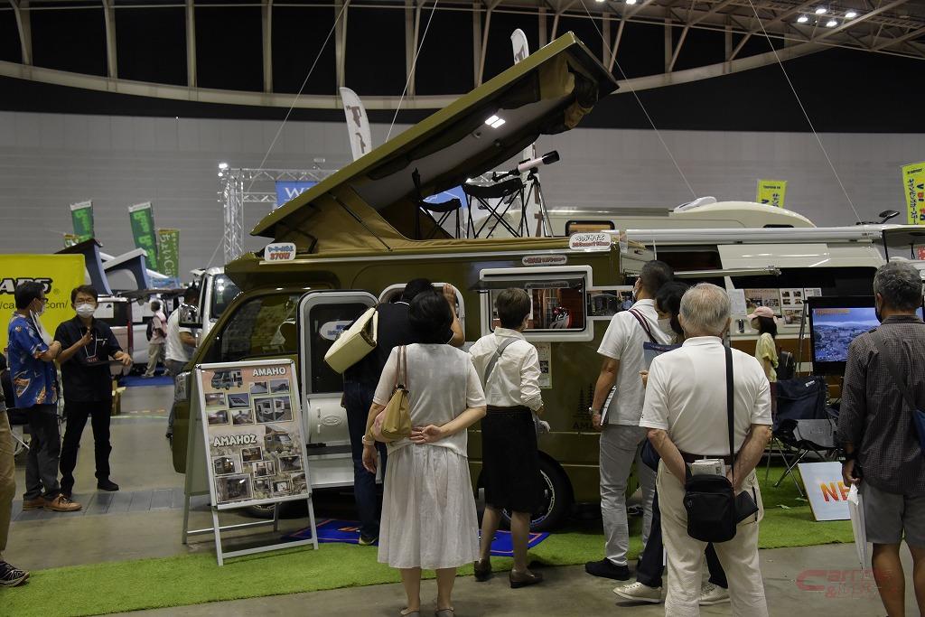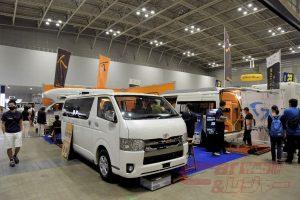 車両展示以外では、人気YouTuberのトークショーやアウトドアグッズコーナーも設けられ、来場者には実りのあるイベントとなった。また、日本RV協会ブースでは、レジャーだけでなく、災害への備えやテレワークなどのビジネスユースを目的とした展示も行われ、キャンピングカーが持つ可能性を訴求した。