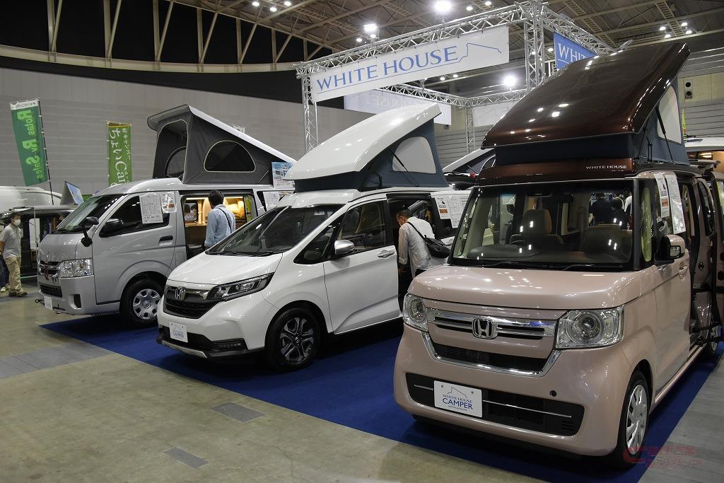 各社の展示スペースには話題のモデルや定番の人気車種に加え、豪華絢爛な輸入モデルなどさまざまなタイプが揃った。中でも、トヨタ・ハイエース/日産・NV350キャラバンなどをベースにしたバンコンモデルが、ボディタイプ別で最も多い56台が出展された。