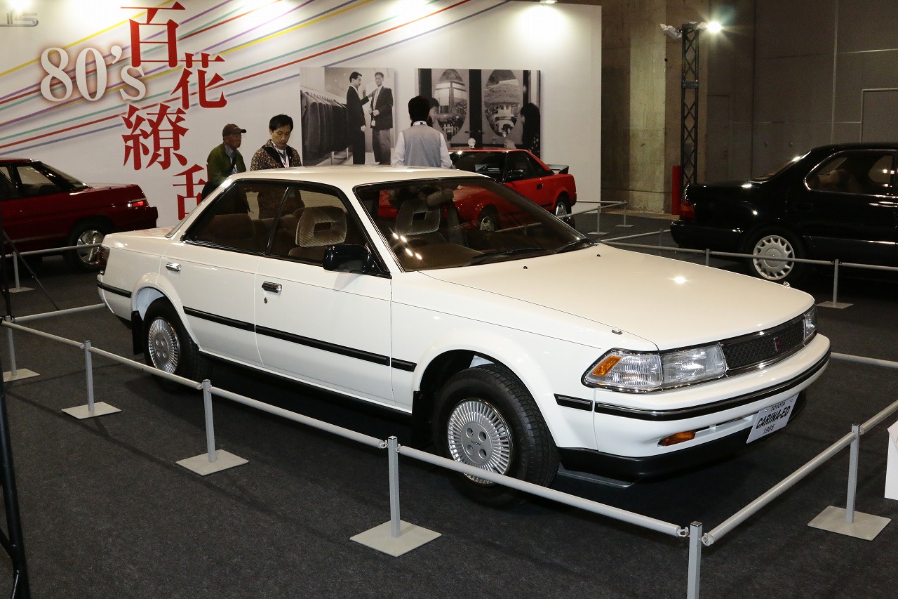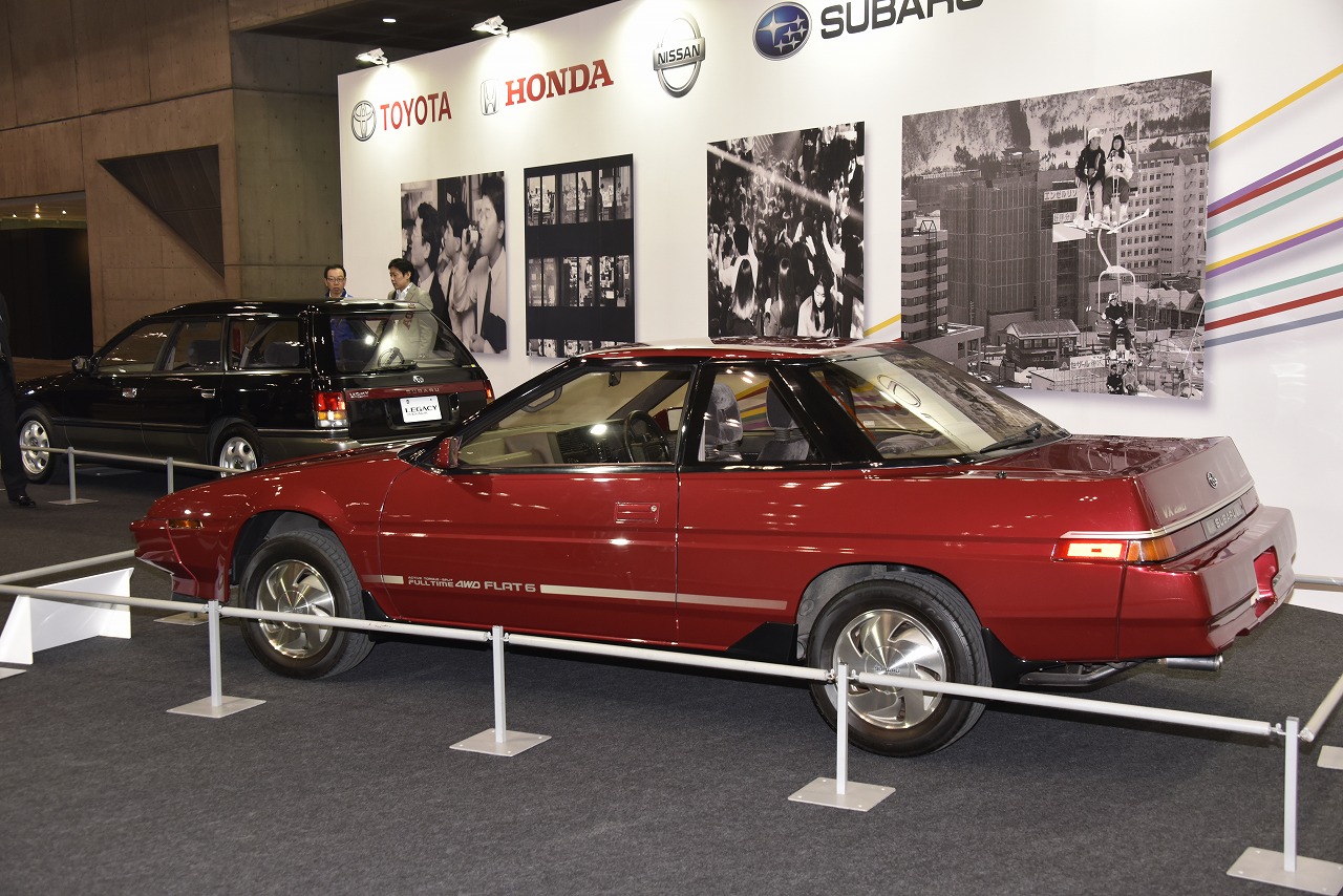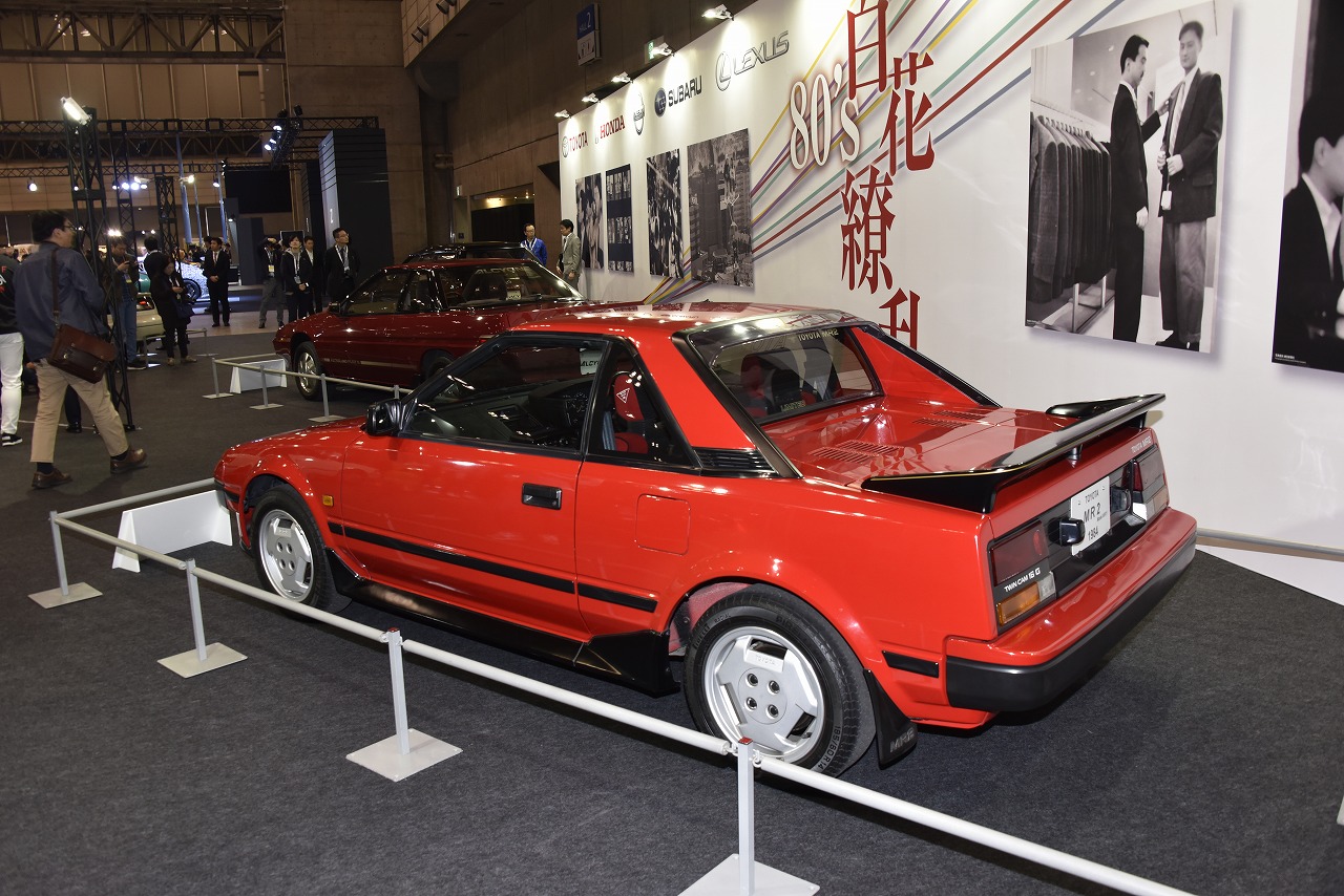 国内メーカーの新たな取り組みとして、トヨタ、日産、ホンダ、マツダ、SUBARU(スバル)、レクサスが「百花繚乱80`s」をテーマに共同出展とした。ブースには80年代に人気を集めたトヨタ・カリーナED、MR2、日産・フェアレディZ、ホンダ・シティカブリオレ、スバル・アルシオーネ、スバル・レガシィツーリングワゴン、レクサス・LS400の7車種が展示された。