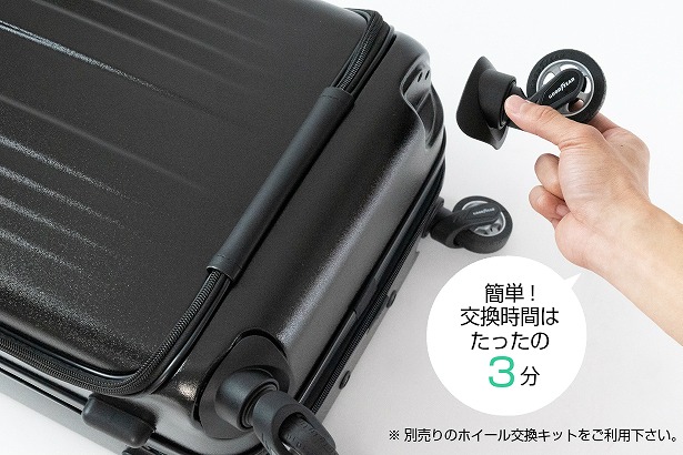 また、ホイールのゴム部分には、車のタイヤを彷彿とさせるユニークなデザインを採用するとともに、ロードノイズを軽減するトレッドパターンを採用している。なお、このホイールはおよそ3分ほどの簡単な作業で交換可能なため、何度でも購入時の快適な走りを取り戻すことができる。