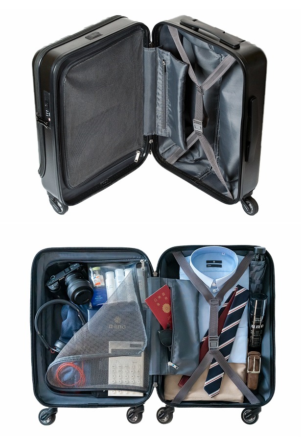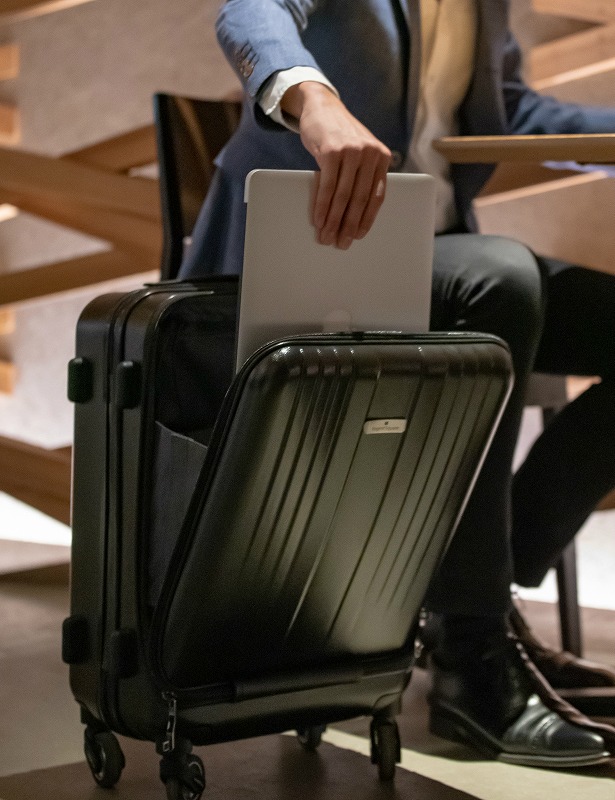 スーツケースのボディ表面は、傷が目立ちにくい加工でマッドな質感に仕上げられ、バーからキャスターまでオールブラックの特別仕様。使い勝手の良いUSBデュアルポートやセキュリティジップなどを採用し、高い利便性を備えている。