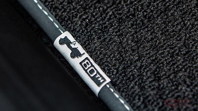 インテリアでは、ジープのオリジンである「Willys」のタグをあしらったレザーシートやブラック仕上げのヘッドライナー、特殊加工を施したドリフトウッド(流木)インテリアアクセントを特別装備しているほか、インストルメントパネルやフロアマットには「80th Anniversary」ロゴを施している。