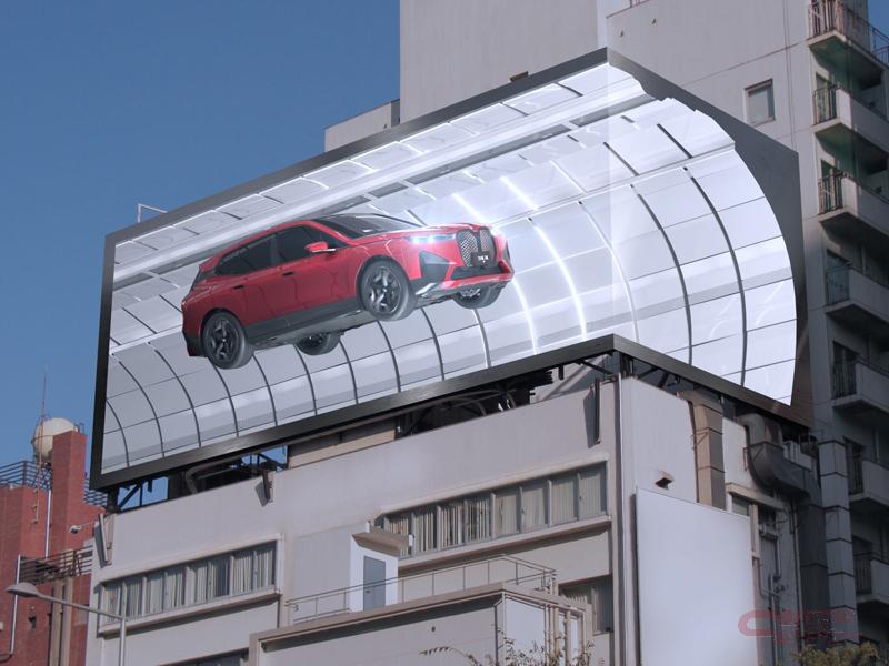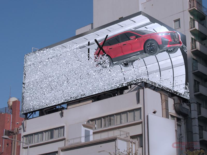 同広告は、人通り、車通りの多い東京都港区表参道の国道246号と表参道が交差する表参道交差点の、屋外広告を多く手掛ける株式会社ヒットが提供するデジタルボードに、3Dによる立体感溢れるBMW iXが登場する。
