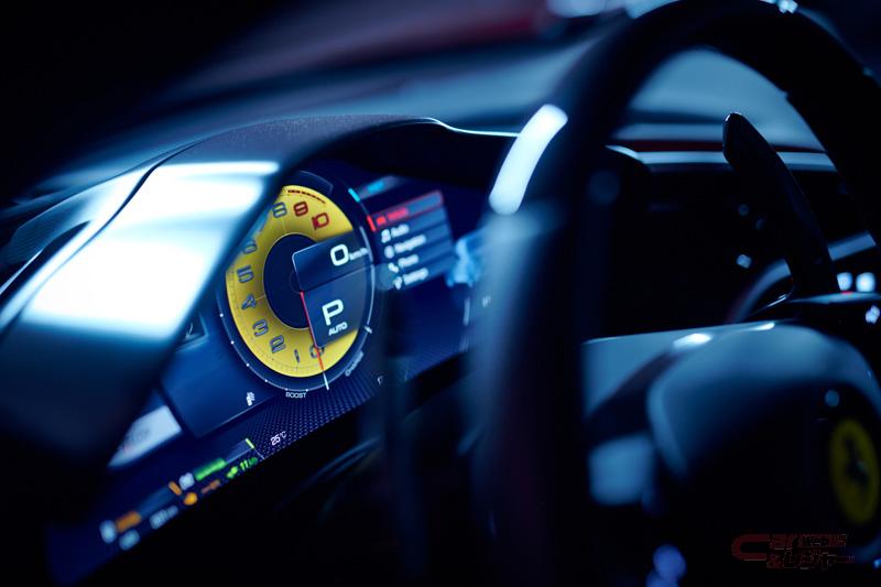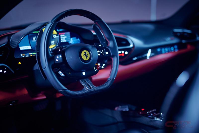 コックピットは、完全なデジタル・インターフェースによる新コンセプトを中心に開発された。SF90 Stradale でデビューしたもので、そこに見られたスタイリングの一貫性を生かしてインテリアがレイアウトされている。先進テクノロジーを洗練さで包み込むことを主眼としている。