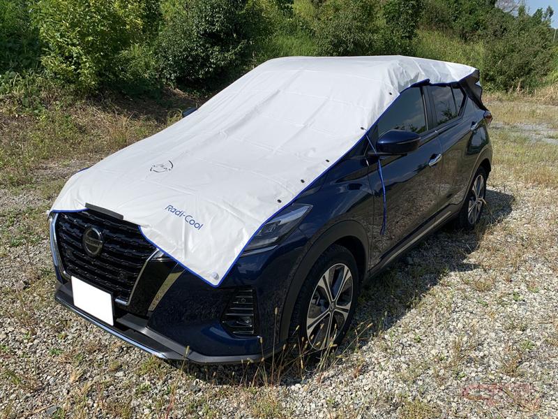日産は、放射冷却素材の「Radi-Cool(以下、ラディクール)」を、自動車メーカーとして初めて純正アクセサリーに採用し、11月2日(火)より全国の日産自動車販売店舗にて、「キックス」向けの同素材を使用した「サンシェード」、「カーサイドタープ」、「ハーフボディカバー」の販売を開始した。なお順次、対象車種の拡大を予定している。