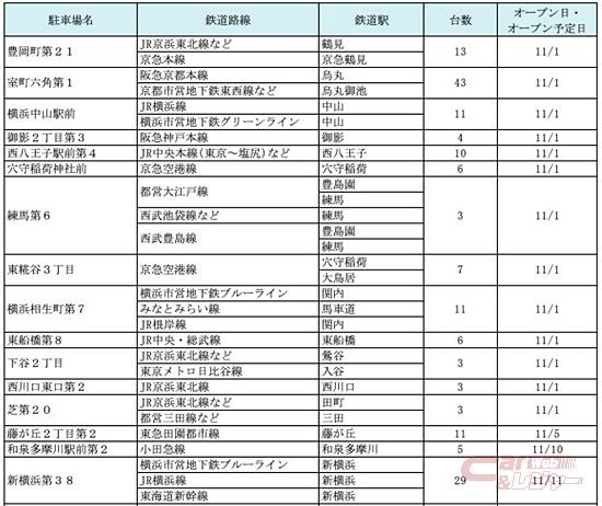 パーク24は11月8日、温室効果ガスの排出量削減に繋がる移動法「パーク&ライド」および「レール&カーシェア」が可能なタイムズパーキングおよびタイムズカーステーションの11月におけるオープン予定を公表した。