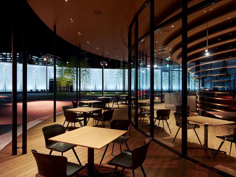 今回、銅賞を受賞した「ニッサン パビリオン」では、持続可能性を高める数々の取り組みを実施しており、施設内のカフェでは、太陽光パネルで発電した電力を活用することに加え、電気自動車での来場者に対して、駐車料金の代わりにバッテリーに蓄電した電力をカフェに給電するという世界初の仕組みを採用した。さらに、100%水力由来の電力(アクアプレミアム)を使用するなど、施設全体でCO2排出量ゼロを実現した。