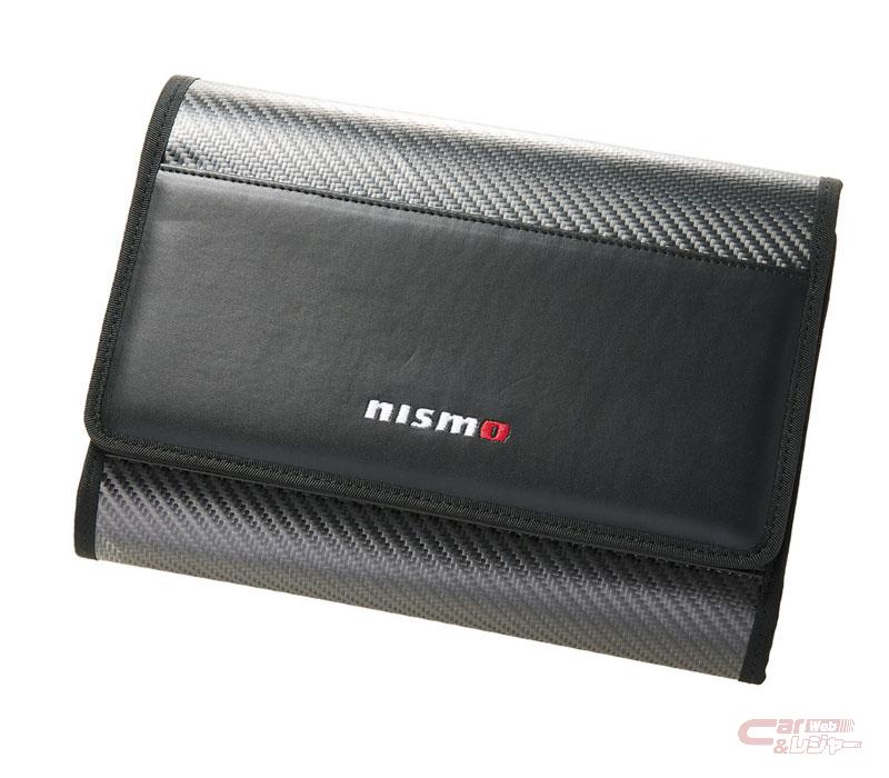 - NISMO車検証ケース:光沢のあるリアルカーボン素材を使用した車検証ケース。