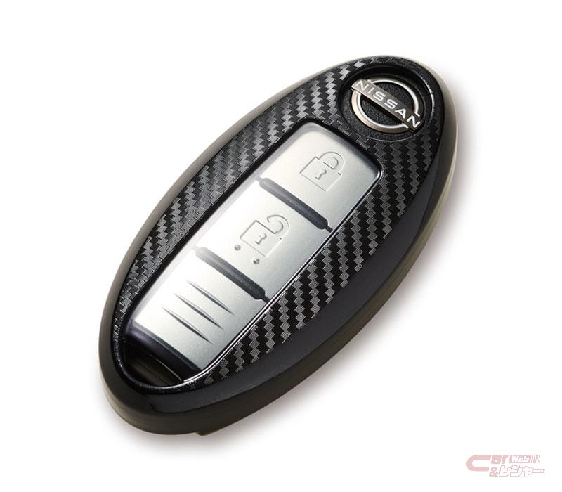 - インテリジェントキーケース フルカバータイプ(カーボン):フルカバータイプのインテリジェントキーケースにカーボン調の加工が施されている。
