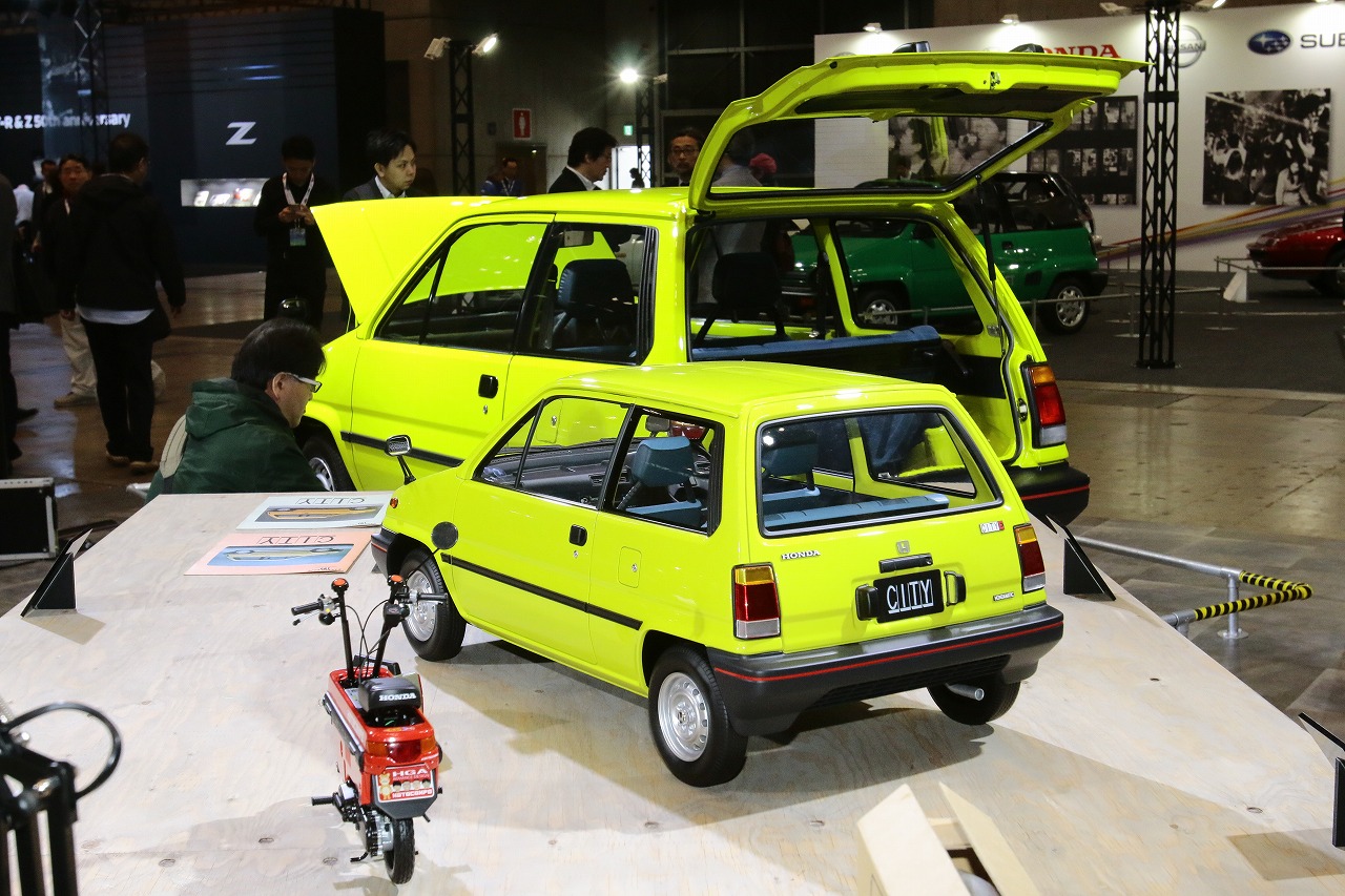 ホンダは、同社のものづくりに伝承されるMM思想~生活を豊かにする人中心のコンセプト~をテーマに、1981年に発売されたシティと、昨年発売されたN-VANをメインに展示し、過去から受け継がれる「人のためのスペースは最大に、メカニズムは最小に」というM・M(マン・マキシマム/メカ・ミニマム)思想を伝えた。