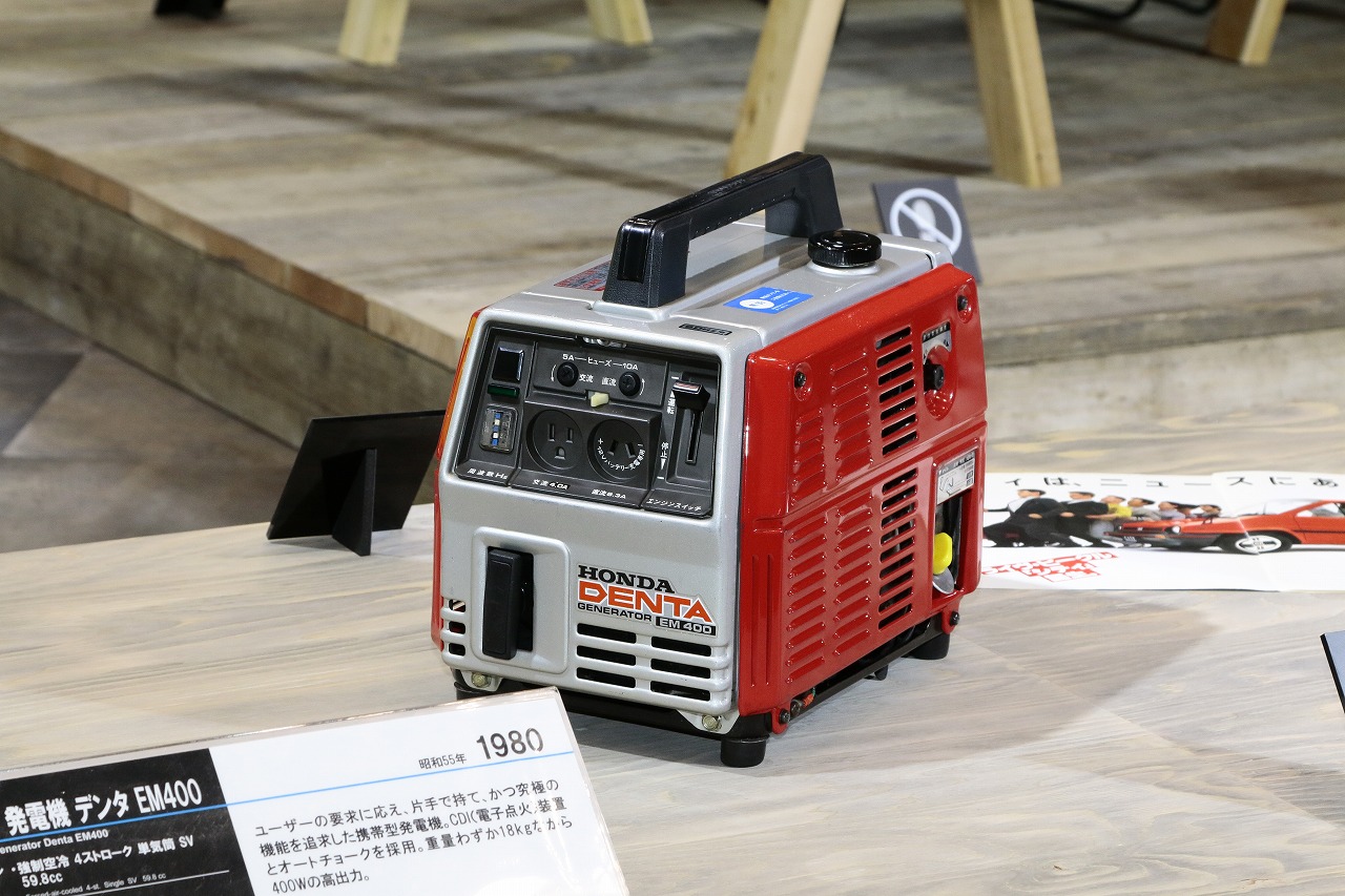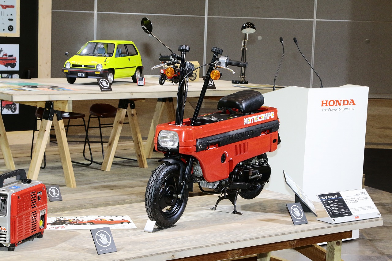 この両モデルのほか、シティ搭載用原付バイクとして発売されたモトコンポ、その同時期に発売された発電機「デンタ」も展示。しかも、これらは実機と同色、精巧な4分の1モックアップスケールモデルも展示された。