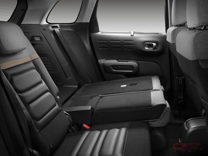 シトロエン・アドバンスト・コンフォート®プログラムにより、車内の快適性をさらに向上。シート生地裏に特別なフォームを配することで、身体とシートの“当たり”感を改善したアドバンストコンフォートシートを採用している。生地裏のフォームのボリュームも従来の2mmから15mmへと大幅アップすることでふっかりとした柔らかさを実現し、疲労につながる車体の微震動をシートが吸収。また、クラスを超えた広くゆったりとしたサイズと身体保持能力により快適な運転姿勢を確保するほか、前席ショルダー部分にはベージュのアクセントラインと、シェブロンを並べたような白いアクセントステッチが施され、モダンでグラフィカルなデザインとなっている。