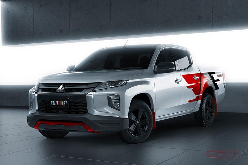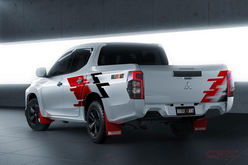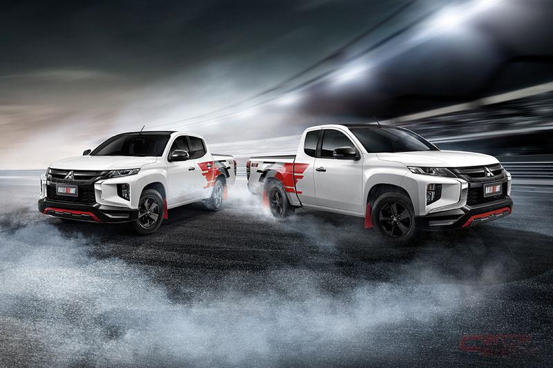 - 「トライトン」のクラブキャブ(メガキャブ)およびダブルキャブのローライダー仕様をベースとし、上記の共通装備をはじめ、レッドのアクセントカラーを加えたフロントバンパーガーニッシュ、ならびにベッドライナーにはラリーアートロゴをあしらい、ツートンカラーモデルにはブラックのドアミラー、ドアハンドル、リヤゲートハンドル、リヤバンパー(クラブキャブのみ)を装備。「トライトン」の力強くダイナミックなスタイリングをさらにスポーティに仕立てている。