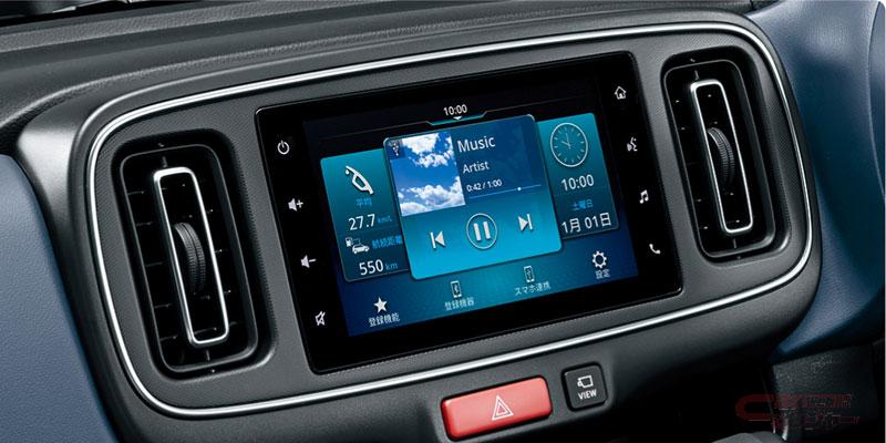 全高を50mm、室内高を45mm、室内幅を25mm拡大し、前席・後席ともに広いヘッドクリアランスやゆとりあるショルダールームとすることで広い室内空間を実現したほか、フロントドア開口部の高さも20mm広げ、前席の乗降性を向上。インパネには、新設のインパネトレー(助手席)やフロアコンソールトレー、インパネドリンクホルダー(運転席、助手席)をはじめ、大型のスマートフォンも収納できるインパネセンターポケットなど、ドライバーから手の届く位置に豊富な収納スペースを設置したほか、運転席・助手席から使いやすいUSB電源ソケット(2個)を装備した。さらに、スズキ国内初となる7インチのディスプレイオーディオを採用し、バックアイカメラや全方位モニターの映像を表示。さまざまな車両情報の確認や、ヘッドアップディスプレイへの交差点案内などの表示も可能としたほか、スマートフォンとの連携によるナビ表示、音楽の再生など、充実した機能を搭載している。