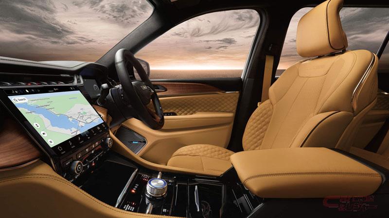 インテリアはグランドチェロキー Lならではの世界観を創り上げるため、一から作り上げられた。インストルメントパネルは水平基調で横方向の広がりが強調されると共に、厳選された上質なマテリアルを重ね合わせたレイヤー状レイアウトにより、上質感を演出。中心部には10.1インチのデジタルタッチスクリーンが配置され、モダンかつ使い勝手に優れたインターフェイスを実現している。