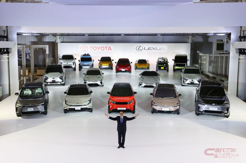 トヨタは12月14日、バッテリEV戦略に関する説明会を開催し、新型BEV(バッテリEV)「bZ」シリーズを公開した。説明会では、2022年発売予定のSUBARUと共同開発したBEV「bZ4X」のほか、トヨタ・レクサスブランドのBEV16車種を紹介。2030年までに30車種のBEVを展開し、グローバル販売で350万台を目指すほか、レクサスブランドでは、30年までにすべてのカテゴリーでBEVのフルラインナップを実現し、欧州、北米、中国でBEV100%、35年にはグローバルでBEV100%を目指すと発表した。