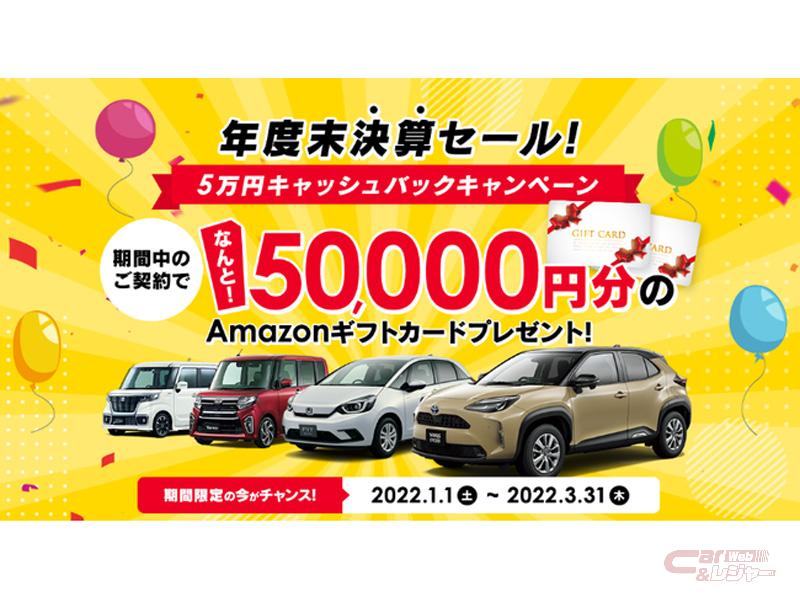 キャンペーン期間中(1月1日~3月31日)にオートフラットを契約したカスタマー全てを対象に、「Amazonギフトカード5万円分」をもれなくプレゼントする。全国の同社系列のサービスステーション(以下「SS」)、および「オートフラット」公式サイトにて実施する。