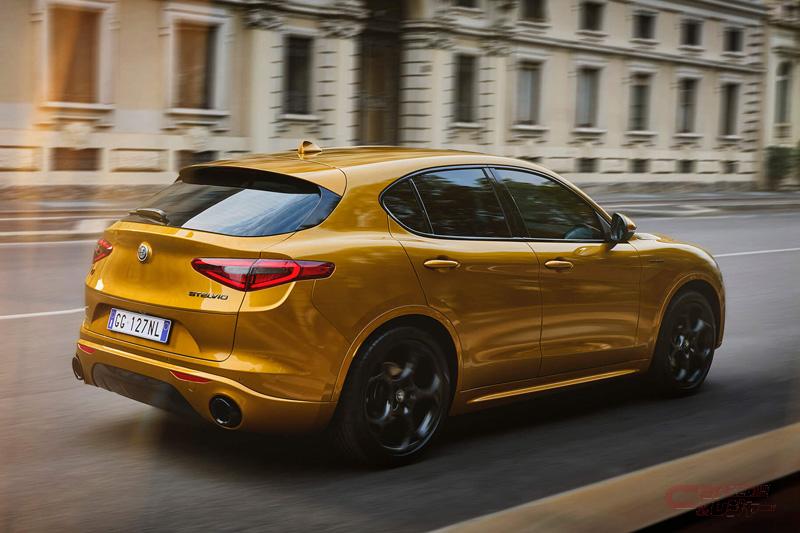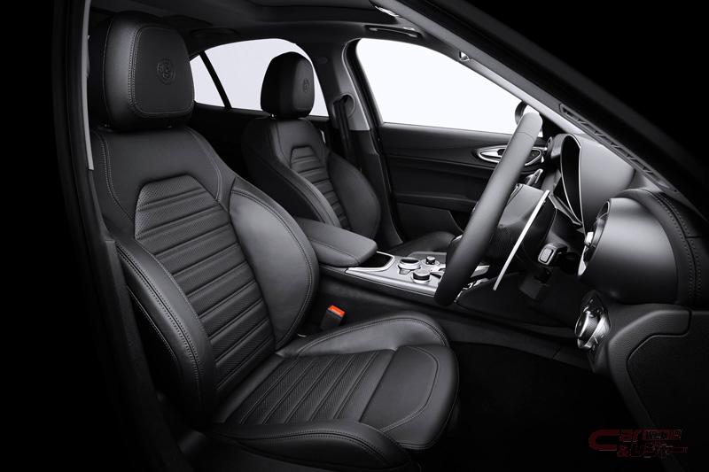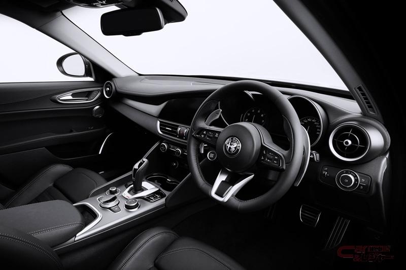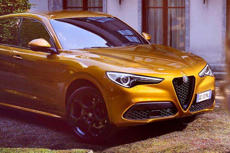 エクステリアには、「GT1300 ジュニア」にも採用されたカラーを、古き良き時代を彷彿とさせつつモダンな印象も与える現代風にブラッシュアップした限定車専用の「リーパリーオーカー」を採用。また、ジュリアでは19インチ、ステルヴィオでは21インチとなる新5ホールデザインアルミホイールを装着し、ブラック仕上げのブレーキキャリパーを組み合わせている。さらに、フロントグリルやミラーハウジング、エキゾーストパイプもブラック仕上げとし、エクステリアカラーとのマッチングが図られている。