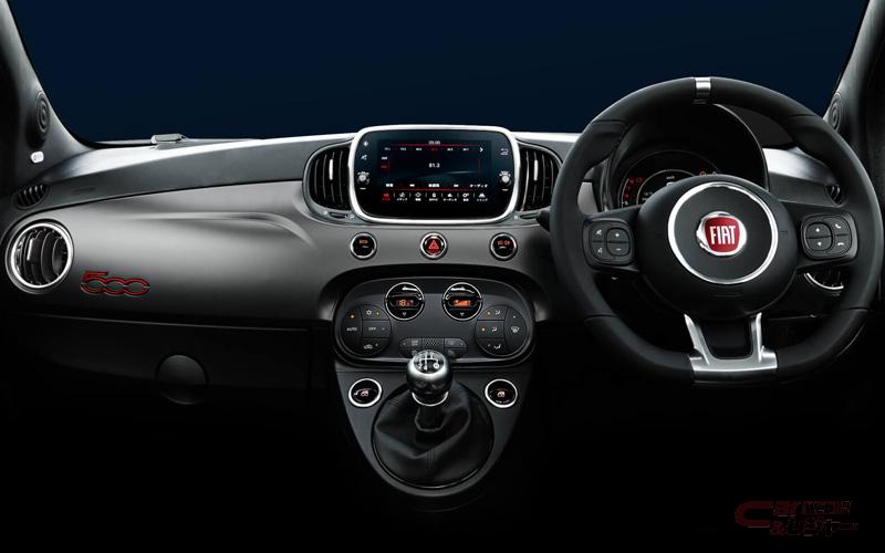 「500」では通常ブルーもしくはブラック/アイスのインテリアカラーが、「500スポーツ」ではブラック基調の落ち着いた雰囲気にまとめられているほか、専用テクノレザー/ファブリックシートや、グレー仕上げのダッシュボードパネルといった特別装備を採用している。