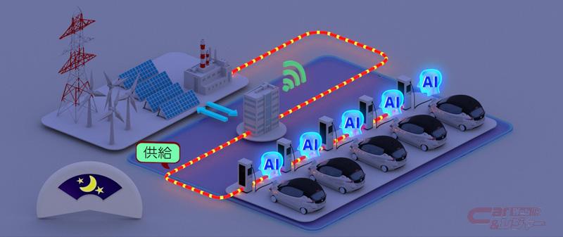 REは、気象状況により発電量にばらつきがあり、電力需給の不均衡が課題となっている。EVを蓄電池として利用し、さらに、EVの充放電を自立的に行うシステムを組み合わせることで、REの有効利用と系統電力の安定化が期待できるとしている。