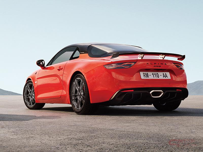 カーボンフロントスプリッター、カーボンリアスポイラー、エクステンデッドアンダーパネルで構成されるエアロキットは、フロントで60kg、リアで81kgの追加のダウンフォースを発生させ、高速域での走行安定性を向上したほか、空気抵抗低減効果により、最高速度が新型「A110 S」の260㎞/hに対し、275 ㎞/h向上した。
