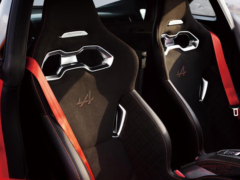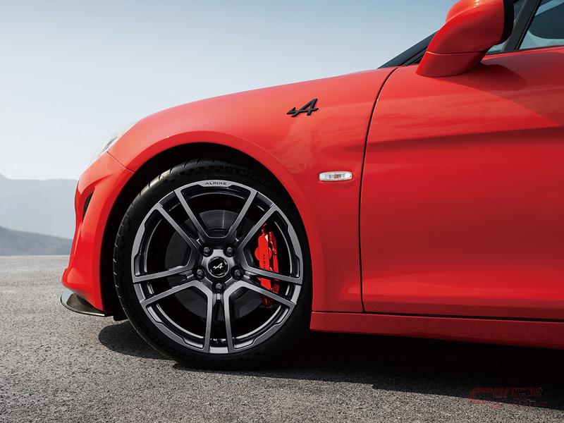 新型「A110」は、これまでと変わらず、ボディを含む重量の 96%がアルミ製で、前後重量配分を理想的な44対56とし、タイヤの接地性に優れるダブルウィッシュボーンサスペンションを採用したシャシーに、直列4気筒1.8リッター ターボエンジンをミッドシップレイアウトに搭載することで、正確なハンドリングを実現。ダンパーも、これまでと同様のダンパー内にセカンダリーダンパーを備えたハイドロリック・コンプレッション・ストップを採用している。