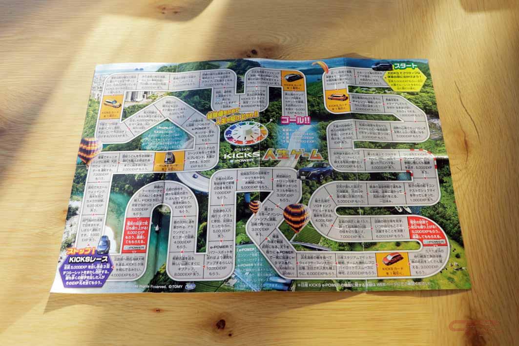 日産自動車のコンパクトSUV「キックス e-POWER」と、タカラトミーの「人生ゲーム」のコラボレーション第2弾として、自宅で「リアル人生ゲーム」の世界観が楽しめるボードゲーム「NISSAN KICKS e-POWER 人生ゲーム-全国アクティブ版-」を、抽選で300名にプレゼントするキャンペーンが特設サイトで行われている(応募は2022年1月31日まで)。
