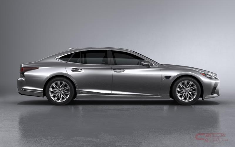 LS外板色「銀影ラスター」は、ハイライトの美しい輝きと奥行きを感じる深い陰影感を特徴としており、レクサス最新のシルバーとして、光輝材(アルミフレーク)を含んだ塗料の体積を凝縮させる「ソニック工法」を応用し、アルミ蒸着を高密度で敷き詰める最新の塗装技術を採用。鏡面のように粒子感をほとんど感じさせない滑らかな質感で、周囲の僅かな光も繊細にとらえ、時の移ろいや変化に呼応し、様々な表情を見せる特別なシルバー色となっている。