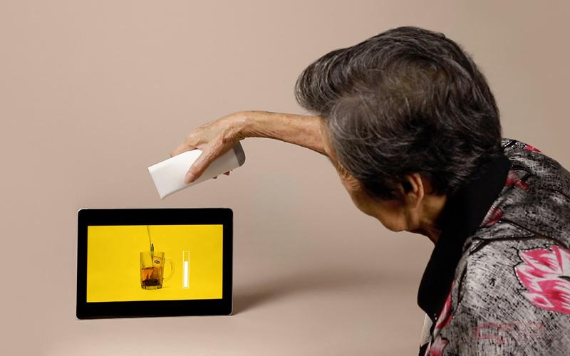 認知症の高齢者が慣れ親しんだ動作を再現し、記憶を呼び起こすためのリハビリテーション支援ツール。手に持ったデバイスによる動作が、ペアリングされたモニター上に視覚的・聴覚的なフィードバックとして反映され、記憶を呼び起こすきっかけとなる。