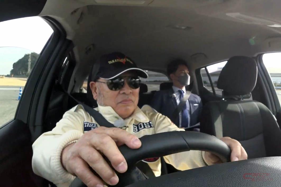 「日産リーフへの挑戦状」のスタンドドライバー編は、カースタントでおなじみのタカハシレーシングの社長であり、スタント界のレジェンドでもある高橋勝大さんが、日産リーフで特設コースに挑む。