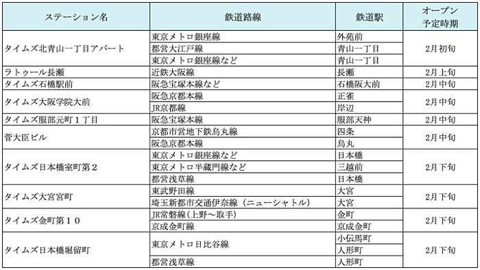 2月にオープンおよびオープン予定の「パーク&ライド」が可能な駐車場は9件、「レール&カーシェア」が可能なステーションは40件となる。