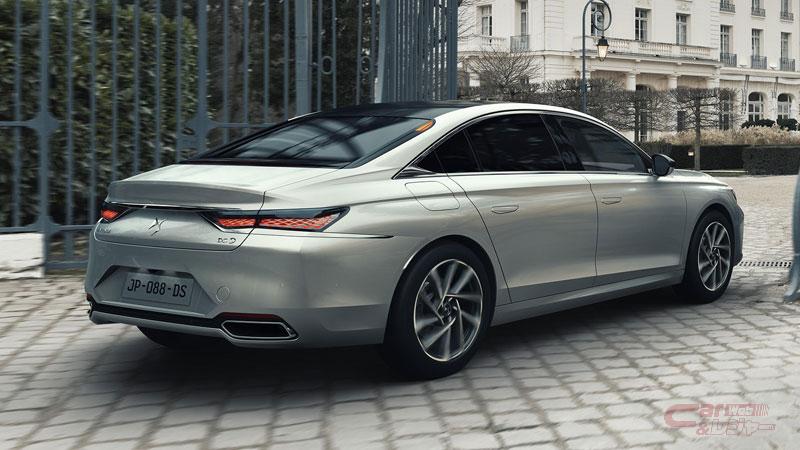 「DS 9」は、全長約4.9m、全幅約1.85m、ホイールベース約2.9mの堂々たるプロポーションのセダンで、DSオートモビルのめざす、フランスの文化を反映したフランスならではのラグジュアリーカーの復活を具現化したフラッグシップモデル。