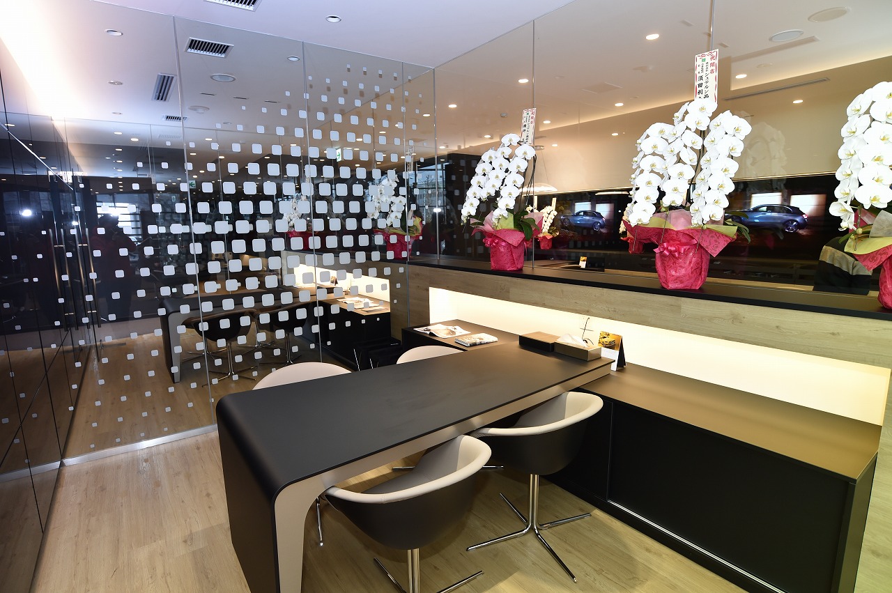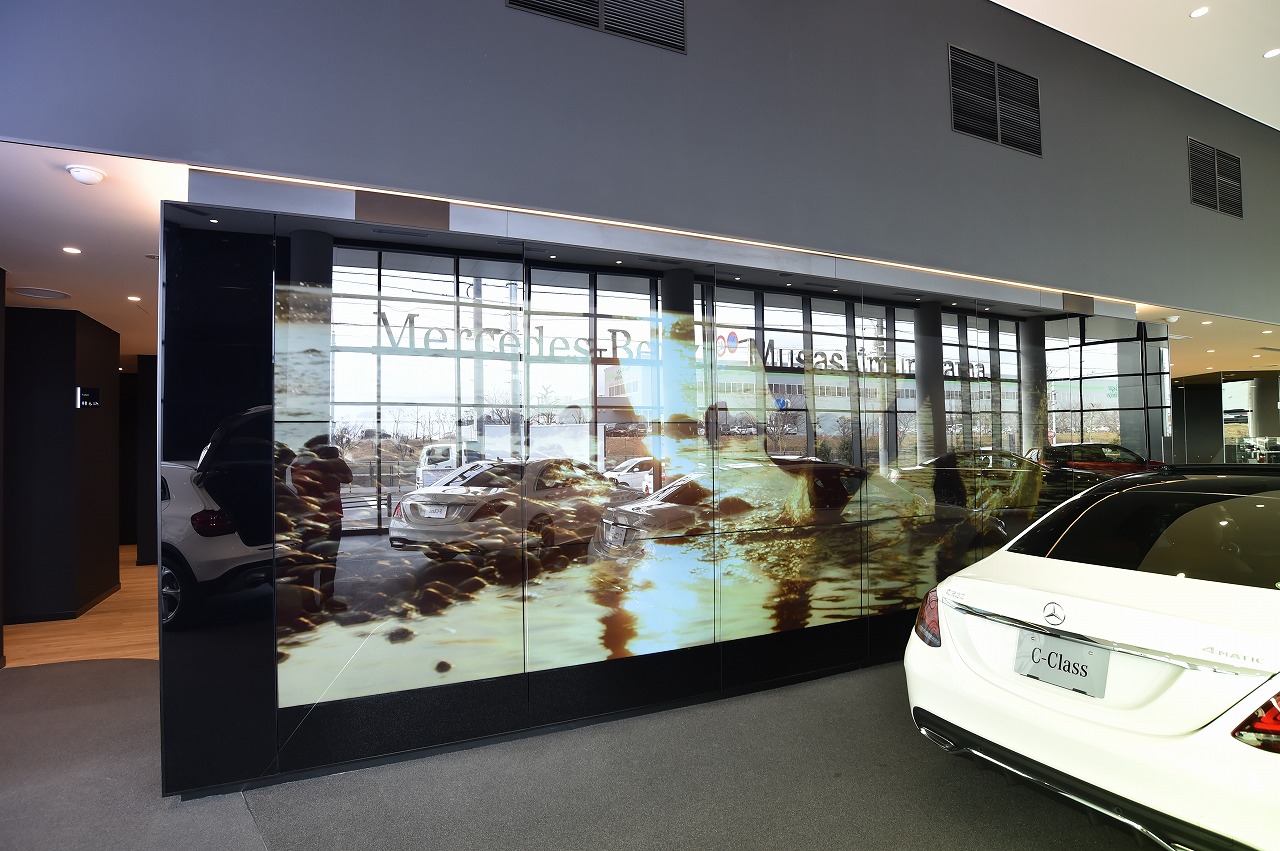 新装された同店舗は、ダイムラー社が新たに展開するCI「MAR2020」を導入。大型マルチディスプレイが印象的なショールームをはじめ、広々としたショールームで幅広いモデルを一度に見ることができる店舗となった。