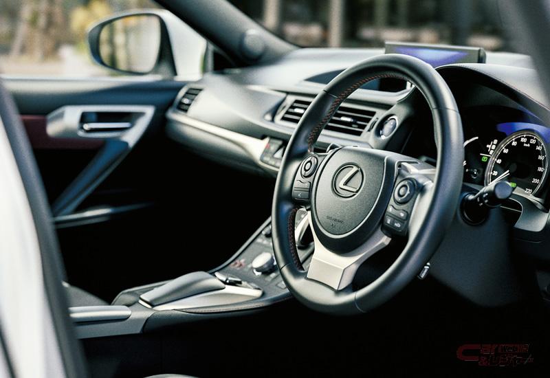 ファイナルエディションとなる特別仕様車“Cherished Touring”は、CT200h“version C”をベースに、専用2トーンを含めた全6色の外板色を設定。さらに、フロントグリルやフロントフォグランプベゼルなどに専用のシルバー塗装を施すことでエレガントなスタイリングとしたほか、インテリアにおいては、シートに特別仕様車専用クリムゾン&ブラック・クリムゾンステッチを採用し、ドアトリムやインストルメントパネルなどにはブラックに映えるクリムゾンステッチを施すことで上質さを際立たせている。ほかにも、ステアリングヒーターやシートヒーターを標準装備し、快適性を向上した。