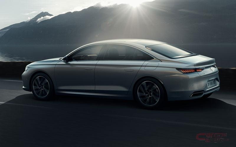 エレガンスとフォーマル感を備える伝統的な3ボックスサルーンのプロポーションを持ち、DS ウィングと呼ばれる表情豊かな造形のフロントフェイス、立体的でダイヤモンドのような輝きを演出するパラメトリック3Dグリルなど、DSオートモビルのデザインコードを踏襲している。全長4940mm、ホイールベース2895mmというサイズをのびのびと表現する、一条のキャラクターラインを採用しているほか、フロントフード部分には、DSオートモビルの各モデルのインテリアに使われていた“Clous de Paris”(クル・ド・パリ)文様のクロームの装飾“セイバー”(サーベルの意)があしらわれている。
