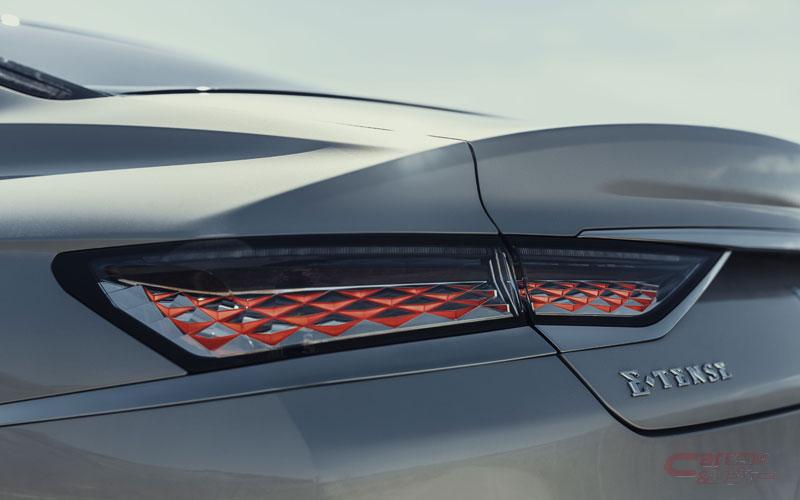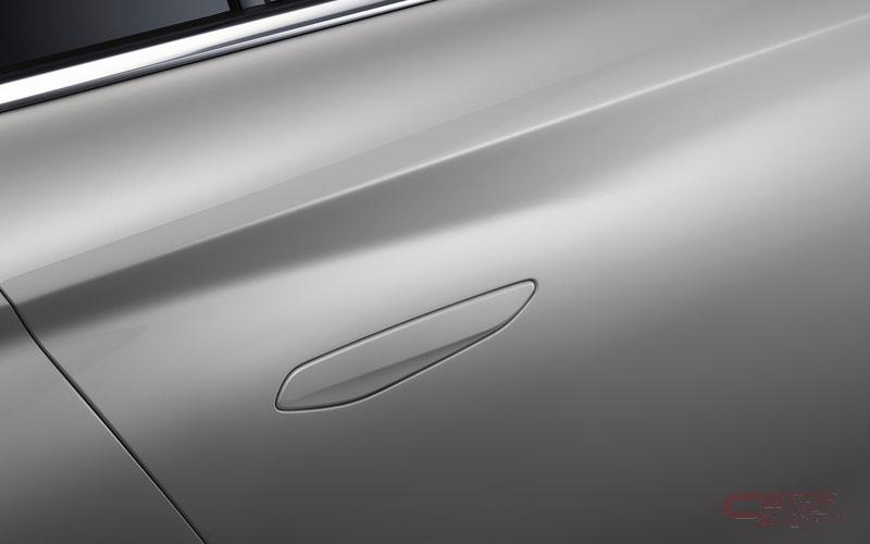 リアエンドには、パリのルーヴル・ピラミッド(ガラスのピラミッド)をモチーフとし、ひし形にレーザーカットされた彫刻的なリフレクターを持つテールランプが埋め込まれ、重層的な3D効果を演出。テールランプは左右方向にリアタイヤに向かうようにセイバーとよばれるクロームの装飾で強調され、視覚的重心位置が調整されている。外装にあしらわれたクロームのデザイン要素は、かつて1930年代に栄華を誇ったフランスのコーチビルダーに捧げるオマージュとなる。